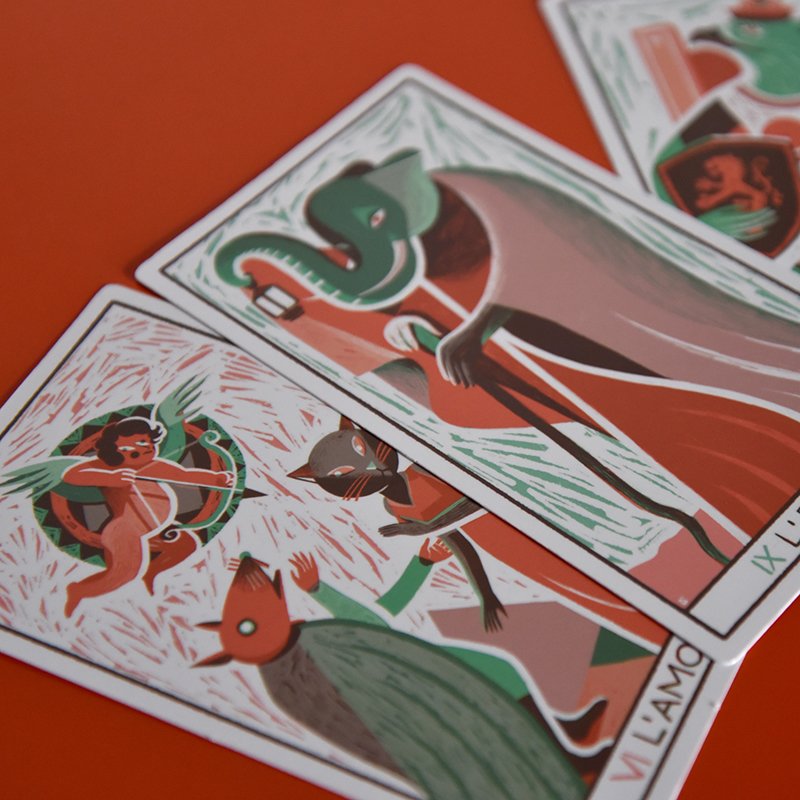 Osservando i tuoi lavori emerge un’immaginario visivo in cui ricorrono spesso figure di animali e creature fantastiche. Anche nel mazzo di carte dei Tarocchi realizzate per Hoppípolla i personaggi hanno aspetti (almeno in parte) animaleschi. Come mai il mondo naturale e animale ritorna così frequentemente nelle tue illustrazioni?