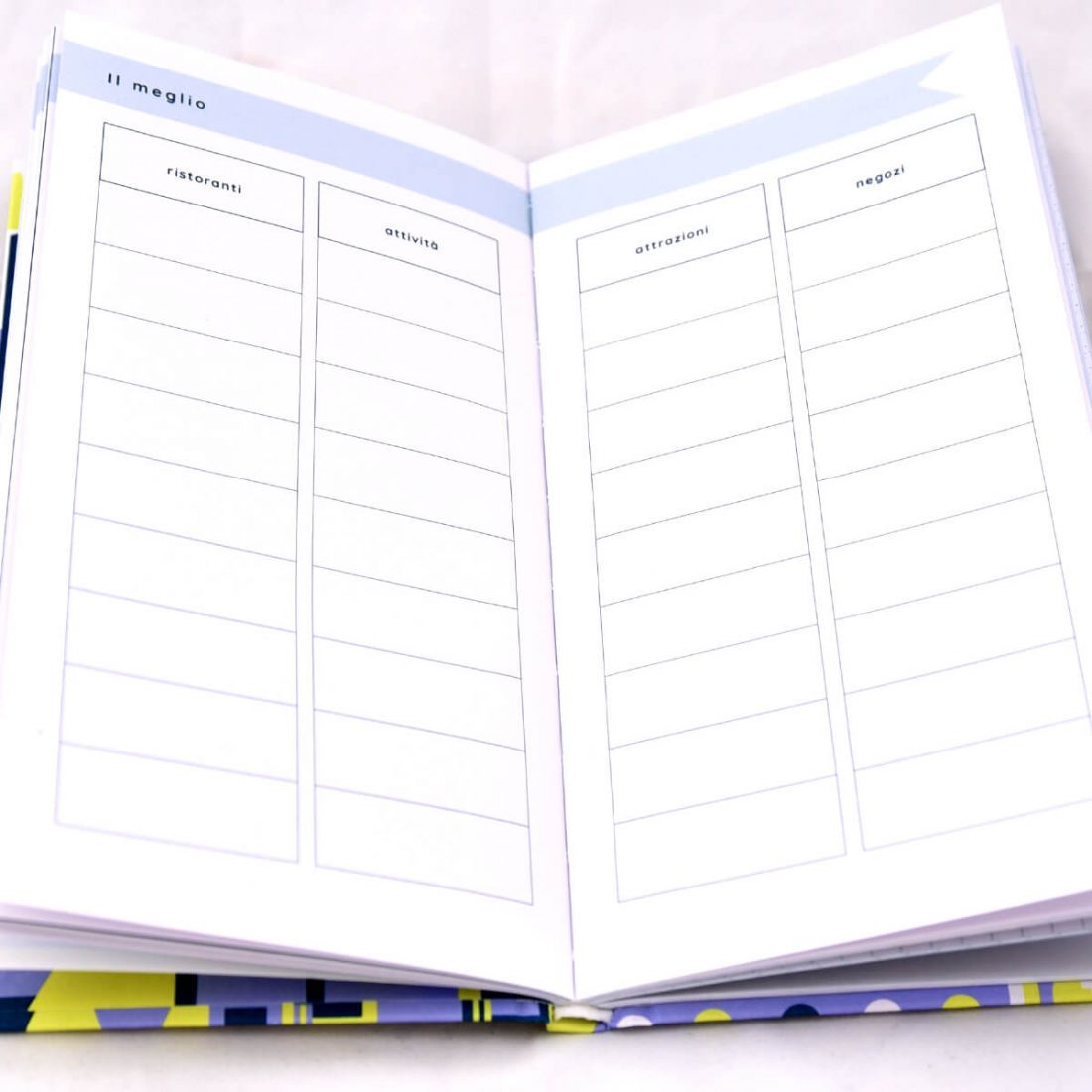 In questo diario di viaggio troverete lo spazio per appuntare tutto ciò che vorrete. Dalle più generiche tappe di viaggio ai minuziosi dettagli di tutti gli spostamenti, dalla selezione dei luoghi da vedere alle recensioni di quelli visitati, fino ad arrivare ad una sezione per riflessioni libere.