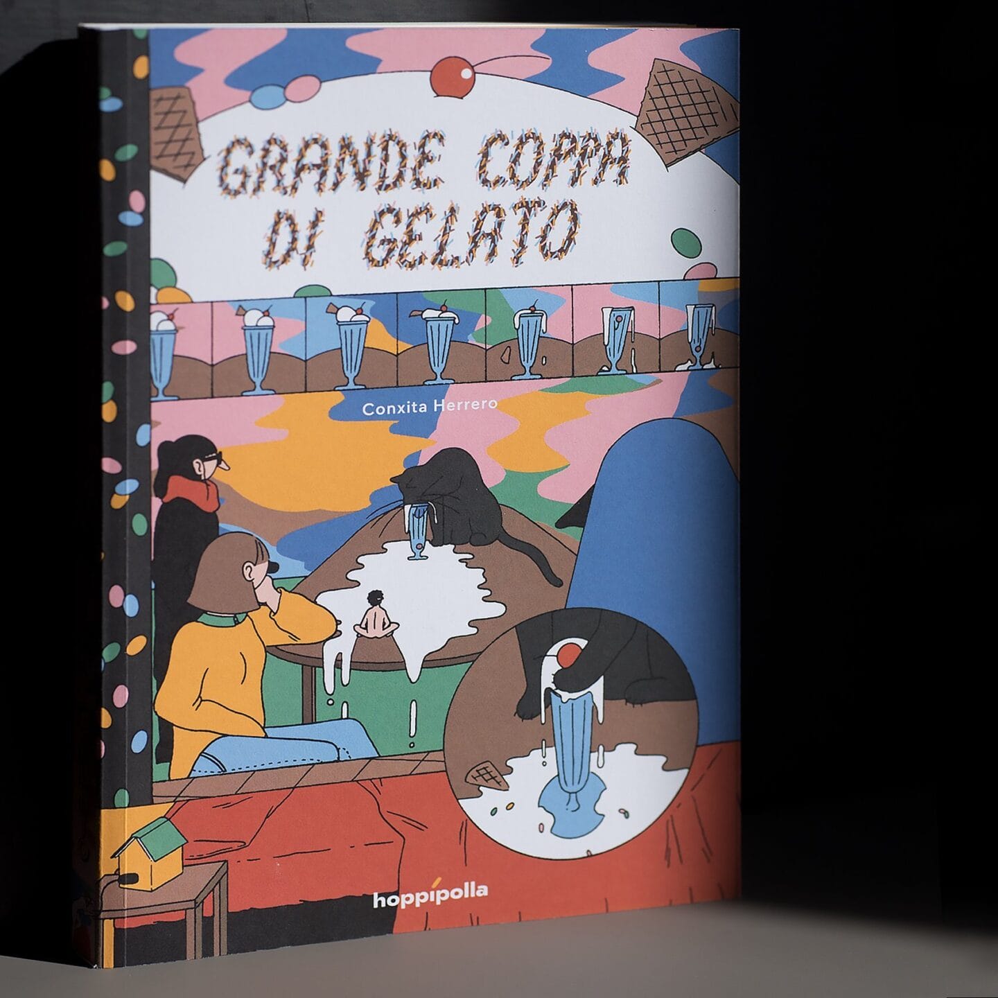 La collaborazione è nata proprio grazie a MYAU zine, la fanzine che curo con la mia amica e collega Jessica Lanteri. Hoppípolla ci ha dato la possibilità di condividere con il suo pubblico un progetto a cui teniamo molto. Qualche mese dopo un mio disegno è stato selezionato per realizzare gli adesivi da bicicletta. In seguito mi hanno chiesto di ideare un packaging per la box di agosto, un progetto molto divertente. Ho cercato di rappresentarlo proprio come se fosse uno dei miei personaggi, come se la scatola stessa prendesse vita!