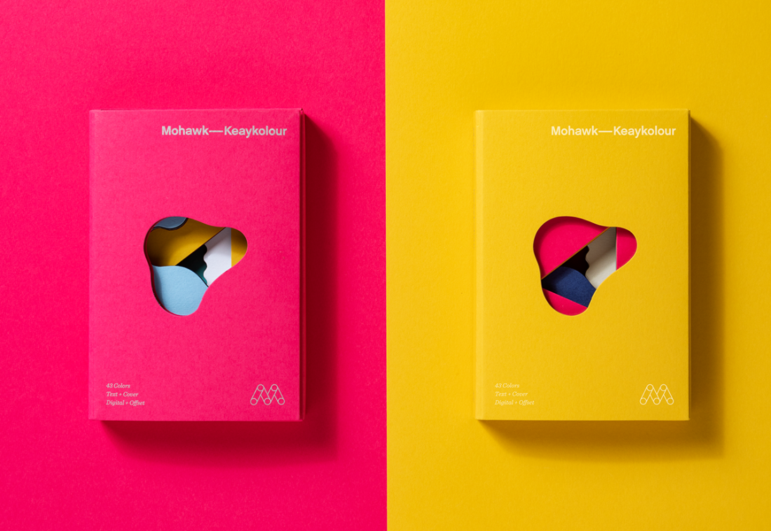 Mohawk Keaykolour è una celebrazione del colore, uno strumento che raccoglie una nuova linea di carte colorate pensate per essere combinate magnificamente insieme e incoraggiare il gioco attraverso l’abbinamento dei colori. Le carte contenute in questo cofanetto sono sciolte e possono essere combinate più e più volte utilizzando le loro forme fustellate come fossero mirini. Il risultato è una divertente esperienza ludica che punta l’attenzione sul potenziale della carta colorata nel design.
