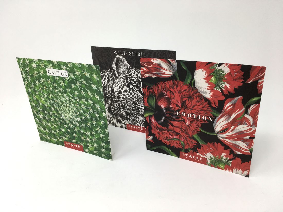 La caratteristica che contraddistingue la sua collezione è il sistema Mix&Match e le collezioni a matrice che permettono di combinare in assoluta libertà le differenti collezioni Taitù. Le collezioni a matrice sono già esempio di dinamicità poiché composte da quattro collezioni in una, in cui colori e soggetti differenti si intrecciano. Per spingersi oltre e superare completamente la staticità della tavola Taitù permette di mixare a piacere alcune collezioni componendo una collezione tutta propria con abbinamenti secondo il proprio gusto.