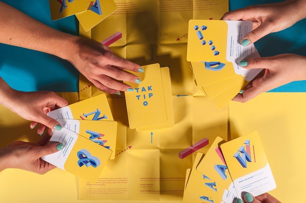 Gli studenti Balázs Szemmelroth, Monika Rudics, Anikó Mező hanno progettato il branding e il packaging per Taktipo, un gioco di carte divertente e audace che ha lo scopo di aiutare i designer ad apprendere le regole di base e i termini che accompagnano lo studio della tipografia. In particolare è stato creato per quei giovani, che sono interessati al design della comunicazione, ma ovviamente è utile per tutti coloro che vogliono conoscere le regole della tipografia.