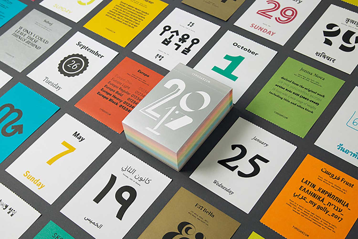 Ben 365 fonts progettati da 223 designers provenienti da 30 paesi e 384 pagine stampate su ambo i lati. Il Typodarium, il piccolo calendario tipografico a strappo, pubblicato da Slanted, è oramai un immancabile compagno dei graphic designer di tutto il mondo. Una pagina al giorno da strappare per altrettanti font da scoprire, conoscere e sperimentare; un rituale quotidiano di cui gli appassionati di tipografia non potranno fare a meno.